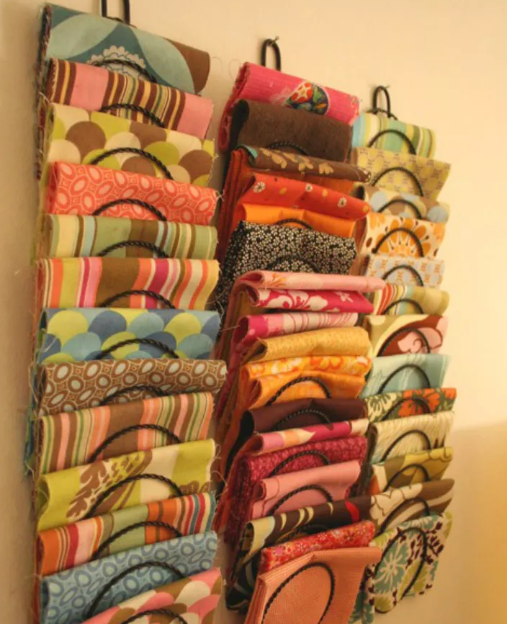 The biggest challenge of organizing your fabric for cross-stitch projects is folding it properly and making sure it continues to stay neat. One way to make sure your linens are kept nice and clean is to fold them on foam board and stack them like you would a book. They will fit perfectly in a bookcase with the foam board. If you are worried about creases in your fabric, roll the cloth and stack in a bin. This will keep the fabric from creasing and still keep your craft room clean.