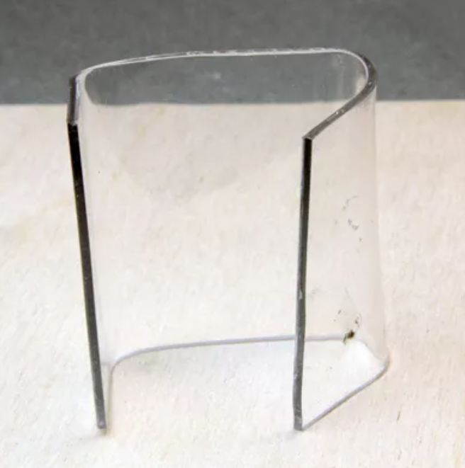 Create curves and bends in flat acrylic or plexiglass sheets for your models or miniatures with a simple jig and common heat sources. Most scale models won’t need bends in acrylic more than 1/16 inch thick. The difficulty with small projects, having tight bends close together, is control of the heat source so the adjoining curve isn’t affected. Using these instructions, a modeler can bend anything from paperweight sheets of acrylic, up to 1/8 inch thick material, in sizes suitable for most miniature projects. You can see a dollhouse project that used this method to make a miniature “glass”-topped case for a shop counter.