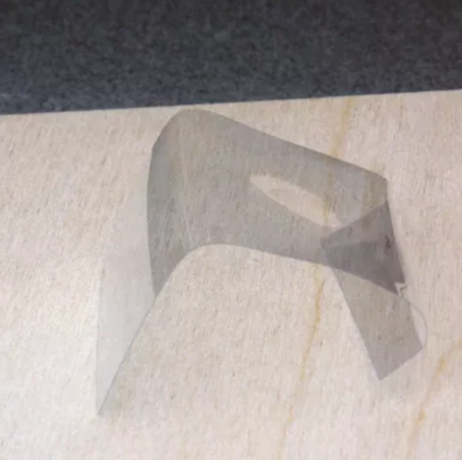 In the photo below, you can see a poor bend in a sheet of 1/16-inch thick plexiglass. The bend is kinked, not even, and is too far away from the jig, so it is not straight and square with the end of the material. The problems with this bend were caused by not applying the heat source close enough to the jig and bending the material before the material was evenly softened across the entire width of the material.