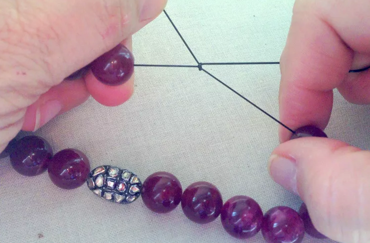 Checking the elastic’s fit is easiest if you buy your supplies at a local bead store. Most stores will allow you to test a package of cord on your beads, or they’ll have a sample of cord at the counter that you can experiment with.